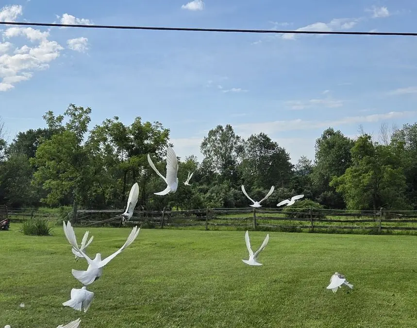 Three doves representing the Father, Son, and Holy Spirit are released and joined by a single dove representing the spirit of the deceased.